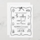 Mão Desenhada Convite De Casamento Quente. Este convite de casamento lúdico e artístico é ideal para casais que querem trazer uma vibração criativa e alegre para a sua celebração. Com um esquema clássico de cor preto-e-branco, parece uma criação encantadora e desenhada à mão com um toque pessoal. Um quadro ondulado amarrado com um delicado arco no topo destaca seus detalhes de casamento, estilizado em uma mistura de roteiro e fontes escritas à mão para um olhar casual, mas elegante. Ao redor do texto estão esboços engraçados e caprichosos de ícones de casamento, incluindo anéis, um bolo hierárquico, corações, uma torre de champanhe, flores e um carro de "Recem casados". Estes rabiscos esquisitos na arte de linha dão à design uma tendência e uma estética descuidada enquanto mantém um charme sofisticado. A parte de trás da placa apresenta um detalhe doce — um monograma manuscrito de suas iniciais, enquadrado por pequenos corações. Totalmente personalizável, este convite é perfeito para os casais modernos que buscam algo único, na moda e explosivo com personalidade. Disponível como um convite impresso ou como um arquivo digital para compartilhamento online ou impressão local.