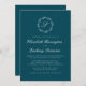 Este elegante design de convite de casamento apresenta um monograma de script branco rodeado por uma coroa botânica de arte de linha sobre um fundo azul teal. Os nomes aparecem em um script branco, com o resto do texto na fonte de serif clássica. A parte traseira da placa é sólida.