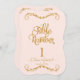 Tipografia de escrita elegante e sofisticada e elementos decorativos de espiral vintage em brilho dourado sobre um rosa pincel suave. Você pode personalizar todos os números ou nomes necessários.