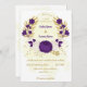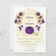 Romântica, roxo real e flores brancas com folhas de ouro, bolso botânico, convite para casamento Os detalhes da brilha são simulados. É adequado para casamento e festas de noivado.