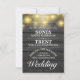 Convites de casamento para um casamento temático de um país rústico. Este design tem antigamente placas de meteorologia, com tinta em flocos e texto branco. Um design excelente para um casamento rústico, de campo ou de celeiro. Se precisar de ajuda para personalizar este design, use o botão Perguntar e designer logo abaixo deste texto.