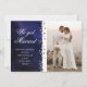 Nos Casamos com o Anúncio de Casamento de Foto do Coração da Luminosa do Coração com a Alopação Espacial apresenta uma nebulosa espacial roxa com sua foto personalizada, corações amorosos românticos de prata com suas informações de anúncio de casamento à esquerda. Personalize editando o texto na caixa de texto fornecida.