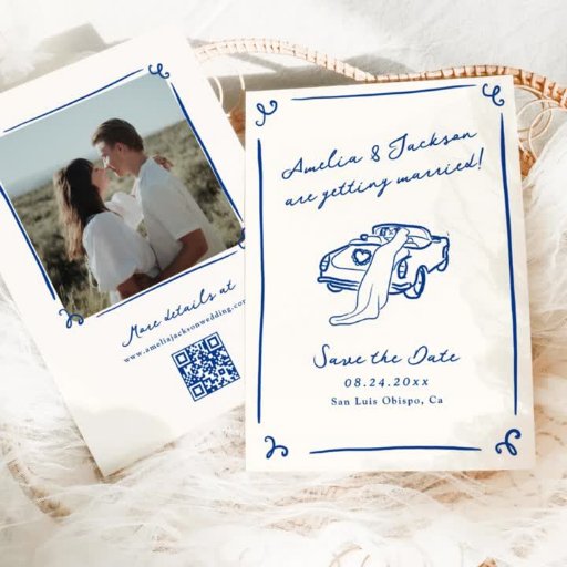 Convites Casando Azul Desenhado À Mão Do Whimsical