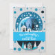 Celebre a festa de feriado da sua família, uma nova residência ou um casamento de Natal com este modelo fácil de atualizar. Basta preencher o nome, idade, data, horário, local da festa e quaisquer notas de RSVP ou outras informações. Altere de "os Willoughby estão organizando o Natal!" para "Chandler e Addison estão se casando!". Disponível em muitos designs para todas as ocasiões. Este design azul e branco apresenta uma cena de inverno com neve caindo sobre pinheiros e casas de fazenda no campo.