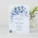 Apresentando este convite de casamento encantador, com flores azuis encantadoras e encantadoras colocadas delicadamente sobre um fundo azul pálido. Este convite foi feito para evocar uma atmosfera de simples elegância e sofisticação, capturando a essência do seu dia especial. A adição do código QR permite que seus convidados acessem facilmente seu site de casamento para obter informações, inclusive informações sobre hotel, traje, detalhes de recepção e opções de janto!