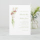 The invitation is adorned with a stunning cascading floral bouquet design, featuring watercolor illustrations of white anthurium, orchids and amaranthus. These delicate blooms, rendered in moss green and rich merlot hues, create a harmonious and inviting aesthetic that evokes the natural beauty of a flourishing garden.