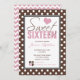 Trendy e na moda doce dezesseis convites com bolinhas brancas sobre marrom na frente, e um padrão chevron rosa e branco zigzag no verso. Personalize com os detalhes do evento de celebração e escolha seu tipo de papel também!