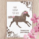 Este bonito convite de aniversário de pônei marrom é perfeito para uma menina que ama pôneis, mini vinhos, cavalos em miniatura ou pôneis Shetland. Este cartão de aniversário equestre é facilmente personalizado e o texto e o gráfico podem ser posicionados de acordo com o seu gosto. Um pônei castanho galopante com rosas cor-de-rosa querido na cabeça e cauda é versátil para a festa de aniversário de um pônei de aniversário de uma menina. Bonita para cores temáticas de festa de aniversário cor-de-rosa e castanha.
