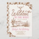 Castanho Rosa Selvagem Oeste Mais Selvagem no Convite à Véspera Ocidental Meninas de qualquer idade mais selvagem no convite à comemoração de aniversário ocidental, com cabeça de vaca Texas Longhorn, paisagem desértica e impressão de vaca marrom. Este convite para o aniversário de uma menina do oeste é ideal para uma Festa de aniversário do Oeste Selvagem.