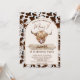 Castanho Vaca Impressão Convite de aniversário Vaca Vaca Sagrada, Vaca sagrada, o convite de aniversário para um pequeno rapaz com uma imagem da cabeça de vaca das terras altas e um fundo de impressão de vaca, na sua maioria castanho. Essa design pode ser usada em qualquer idade e é uma forma fofa de estabelecer o cenário para uma festa de aniversário temática de vaca em terras altas.