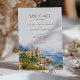 Este elegante cartão de identidade capta o encanto romântico de Castell de Tamarit, localizado na bela costa espanhola. A frente da carta apresenta uma ilustração impressionante de aquarela do castelo estrelado acima do Mar Mediterrâneo, evocando a beleza serena de um casamento de destino. A tipografia minimalista em tons castanho-quente e dourados contrasta perfeitamente com os azuis suaves, verdes e tons arenosos da paisagem. Ideal para casais planejando um casamento na Espanha ou buscando capturar a essência de uma celebração de destino, essa carta é uma combinação perfeita de sofisticação e beleza natural.