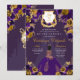 Quinceanera, Elegante Floral Roxo e Dourado, Convite de Aniversário