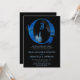 Convite de Casamento com Castelo Medieval Fantasia Fada Conto de Fadas Azul Jeans Indigo Branco Energeticamente Reforçado, perfeito para o seu Sonho de Casamento de Conto de Fadas.