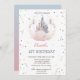Este primeiro convite de aniversário com castelo aquarela e princesa em nuvens.