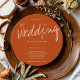 Um convite circular de casamento com um design casual, porém moderno, de tipografia. Este convite de cor sólida laranja queimada acentua o grande evento com a palavra Casamento em uma fonte grande, estilo de escrita manual. O resto do convite é em tipografia limpa, aberta, que dá ao design uma estrutura forte. Este convite reflete a natureza relaxada, mas bem organizada, do seu casamento. Pronto para verificar convites fora da sua lista? Basta adicionar suas informações, adicionar este convite ao seu carrinho e fazer um casamento de excelente. Design de Feriado Casual de Tipografia Laranja Queimada | ©Melissa Patton - Designer