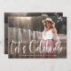 Este formando elegante e moderno apresenta duas fotos do formando. Na frente há uma escrita branca moderna casual que diz "comemoração do vamos", juntamente com o nome do formando, a escola e o ano de aula. Na parte de trás está uma segunda, desbotada, foto do formando com todas as informações do seu partido claramente impressas sobre ela em uma camada. Um na moda e um simples convite de formatura que irá destacar as suas fotos pessoais favoritas do formando!