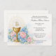 Featuring our traditional Catholic First Holy Communion pink and blue floral invitation with the Eucharist with the Chalice below. Suitable for a boy or a girl's Communion. On the back is a scripture quote with a beautiful image of a gold cross accented with flowers.
