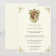 Featuring a beautiful Catholic Elegant Vintage Betrothal Invitation of the betrothal of the Virgin Mary & St. Joseph with vintage gold frame and white flowers. All text may be easily customized.