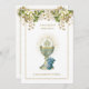 Celebrar o Sacramento da Primeira Comunhão é uma ocasião maravilhosa. Este tradicional vintage católico, desenhado por costumes, Primeiro Convite à Comunhão com o Chalice e o Santo Eucarista com flores brancas e sotaques de ouro expressará certamente a beleza e solenidade deste dia especial. Todo texto e fontes podem ser modificados facilmente.