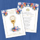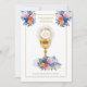 Celebrar o Sacramento da Primeira Comunhão é uma ocasião maravilhosa. Este tradicional vintage católico, desenhado por costumes, Primeiro Convite à Comunhão com o Chalice e o Santo Eucarista com flores cor-de-rosa e azuis é certamente a expressão da beleza e solenidade deste dia especial. Todo texto e fontes podem ser modificados facilmente.