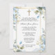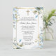 Apresentando um belo convite religioso Batismal Christening desenhado por costume com uma borda floral azure azul, a Bênção Virgem Maria segurando Jesus e um verso de escritura dourada na frente. Todos os textos e fontes podem ser modificados.