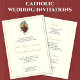Personalize os nossos belos convites de casamento de marfim católico tradicional com uma bela imagem do Coração Imaculado e Orgulhoso de Maria sobrepostos numa cruz. No verso estão incluídas todas as informações para a recepção, o rsvp e o registro. Todo texto e fontes podem ser modificados. Há muitos itens coordenadores que combinam com esta design na nossa coleção de casamento.