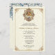 Apresentando um belo costume católico desenhado pelo Baptismo Christening Convite Floral Os anjos guardiães observando um lindo bebê incrustado em uma estrutura de ouro com spray floral azul e branco. Todos os textos e fontes podem ser modificados.