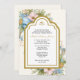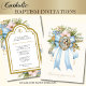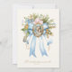 Apresentando um belo e personalizado convite de Natal católico e batismo com a Mãe Abençoada segurando Jesus em seus braços sobrepostos em um arco azul com spray floral. Todos os textos e fontes podem ser modificados.