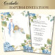 Apresentando um belo convite de Natal Batismo desenhado por costume com flores azuis e a Bênção Virgem Maria com vista para um bebê. Todos os textos e fontes podem ser modificados.