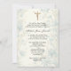 Apresentando um belo convite Batismal Christening desenhado e personalizado com uma borda floral azul, a Bênção Virgem Maria segurando Jesus.