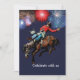 Este é um convite de 2 lados com um cowboy montando um cavalo saltando na frente com fogos de artifício ao fundo e muitos campos de texto no verso para preencher os detalhes da sua festa. O número da idade pretende parecer uma marca na anca do cavalo.