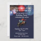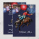 Este é um convite de 2 lados com um cowboy montando um cavalo que se empina na frente com fogos de artifício ao fundo e muitos campos de texto no verso para preencher os detalhes da sua festa. O número da idade deve parecer uma marca no quadril do cavalo.