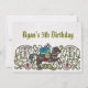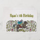 Cavaleiro Vintage andando a cavalo em belas bordas decorativas. Cartão de aniversário personalizado.