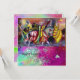 Desenho floral elegante e caprichoso com uma planta de borboleta mágica, espirais florais, fadas, cavalos, noturno musical em cores vibrantes azul-esverdeado, vermelho, amarelo e branco. Pintura acrílica em tela, pintura de mídia mista com folha de ouro e prata. Este design artístico e sofisticado é facilmente personalizável com seu texto e iniciais como cerimônia de casamento, anúncio de núpcias, concerto, programas de aniversário, cartões de lugar, agradecimento, festas de aniversário de 16 anos, chás de revelação de noivado romântico, feriados, escritório, reuniões de família, celebrações de Ano Novo, aniversários, encontros, recital ou qualquer outro evento que você desejar!