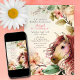 Este convite para o aniversário de cavalo apresenta um cavalo bonito com flores.