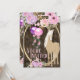 Este convite para o aniversário de cavalos apresenta um Bonito Pônei Palomino com flores e balões cor-de-rosa e roxos, sobre um fundo de madeira de casca. Ele pode ser facilmente personalizado com todos os detalhes do seu partido. -