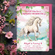 Celebrar um aniversário balbucioso com nosso Bonito Convite de Aniversário para Cavalo Branco e Flores Rosa. Adorado com um charmoso cavalo branco e delicadas flores cor-de-rosa, esse convite captura o encanto de uma celebração mágica. Perfeito para qualquer um que ama um toque de fantasia e elegância floral, ele dá o tom para uma deliciosa reunião de aniversário. Convide seus convidados a se juntar às festividades com este doce e caprichoso convite que promete um dia cheio de alegria, flores e a magia de um cavalo branco.
