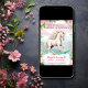 Convites Cavalo Branco bonito e Flores Rosa Aniversário
