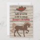 Cavalo de silhueta marrom personalizado com um chapéu de cowboy em um convite de aniversário de fundo de madeira para garotos. Alguns gráficos de Poppydreamz em Mygrafico.com. *