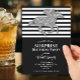 Os convites de aniversário apresentam um falso cavalo de corrida prateado em listras brancas e pretas na parte superior e na parte inferior para informações sobre sua festa. CORRESPONDENDO a itens na nossa loja.