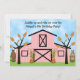 Cavalos bonitos com um celeiro cor-de-rosa e convite de aniversário de árvores de outono. É perfeito para qualquer festa do cavalo ou pônei no outono.