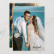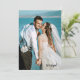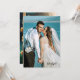 Felizmente, depois de nosso convite de casamento, mostrando sua própria foto na frente. Nas costas há um design com cavalos marinhos casandos em um mundo oceânico submarino. O código QR pode ser facilmente personalizado adicionando seu próprio URL (ou você pode simplesmente excluí-lo). Bonito para um casal que se casou num local costeiro ou ama peixe e oceano.
