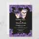 Crânio até a morte nos convites de Ricaso - projetados em um estilo ousado e moderno - esse casal do crânio é perfeito para aqueles que são maravilhosamente diferentes e não têm medo de mostrá-lo - Casamento de Halloween ou qualquer hora - desenhado em roxo e preto com estrutura floral um crânio com um chapéu de cima e um com flores na cabeça