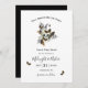 Assustadoramente belo salve o convite de encontro com até a morte... "Nós somos parte" dizendo e crânio com borboletas e névoas em um fundo negro. Perfeito para um casamento gótico ou de Halloween. Veja nossas outras ideias de casamento gótico também.
