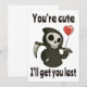 Ceifador engraçado e adorável com balão de coração romântico diz “Você é fofo, eu vou te pegar por último”. Perfeito para o Dia dos Namorados e também para o Halloween. Para crianças e adultos.
