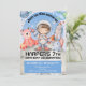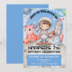 Eleve sua celebração de aniversário com este encantador convite de aquarela apresentando um astronauta azul claro explorando o cosmos. Perfeito para festas temáticas espaciais, este design captura a maravilha e a aventura do espaço sideral. Personalize com o nome da criança, idade e detalhes da festa para uma experiência verdadeiramente personalizada.