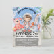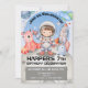 Eleve sua celebração de aniversário com este encantador convite aquarela apresentando um astronauta azul claro explorando o cosmos. Perfeito para festas temáticas espaciais, este design captura a maravilha e a aventura do espaço sideral. Personalize com o nome da criança, idade e detalhes da festa para uma experiência verdadeiramente personalizada.