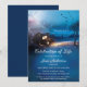 Um convite de memorial ou celebração da vida único com uma ilustração de um guia seguro para a casa do espírito, guardado por um anjo. Você pode substituir o design texturizado azul da parte de trás por uma foto personalizada, se desejar.