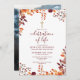 Esta moderna e elegante celebração floral de outono de cor-d-água de burgundy pode ser personalizada com suas informações na tipografia da na moda e fotos no verso. Projetado por Thisnotme©