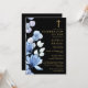 Este convite de celebração cristã da vida e do luto, floral azul elegante preto e dourado, pode ser personalizado com as suas informações em tipografia clássica. Concebido por Thisisnotme©